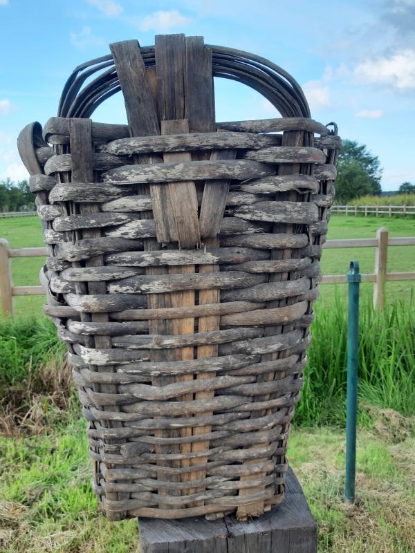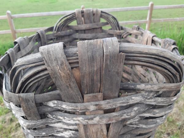 Mooie authentieke oude Franse manden die vroeger gebruikt werden in de druivenpluk.
